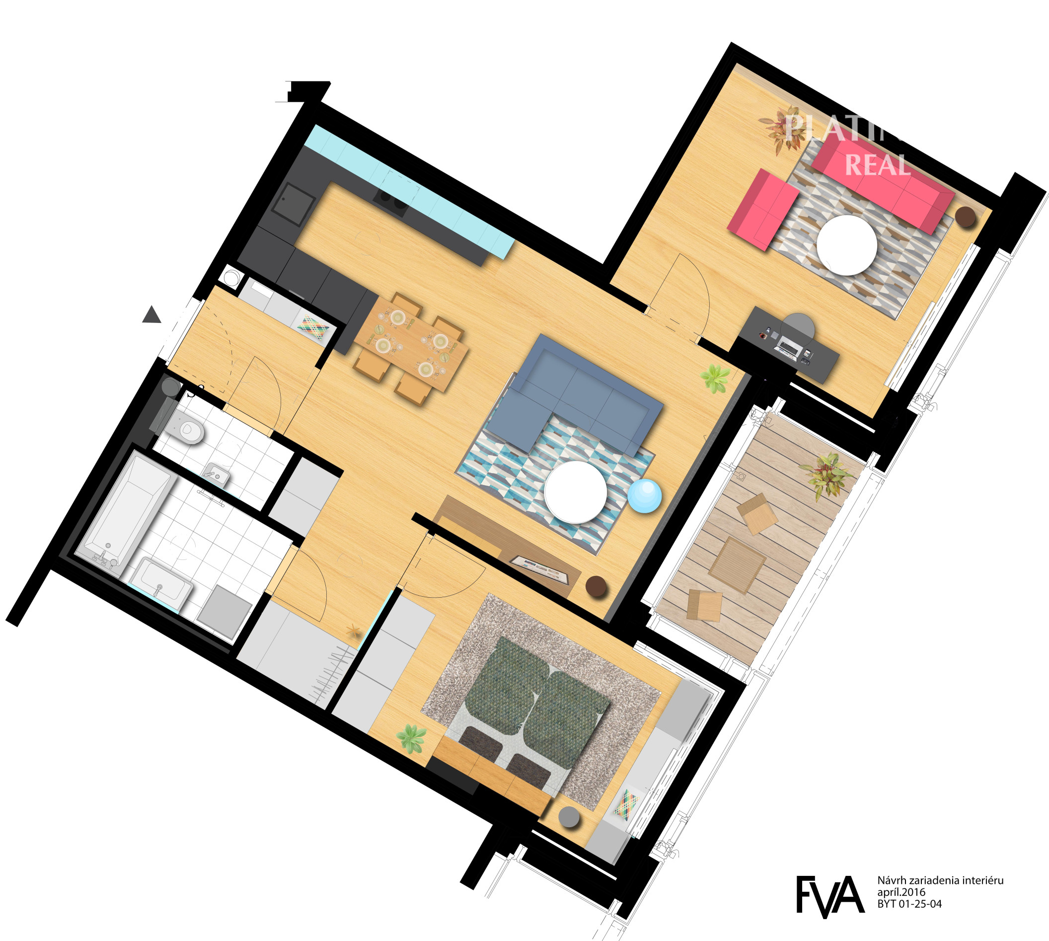 Celková výmera je 81,48 m2 (výmera bytu 72,56 m2 + terasa 5,88 m2 + sklad 3,04 m2). Predmetný byt sa nachádza na 25. poschodí so 4-mi rýchlovýťahmi, pivničná kobka na 2.p., garáž na - 1 p.
